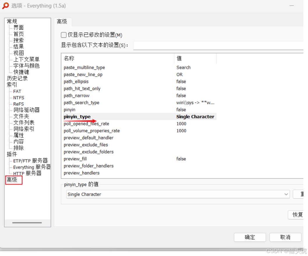 高级设置:可在配置中修改拼音类型(全拼、首字母混合)。