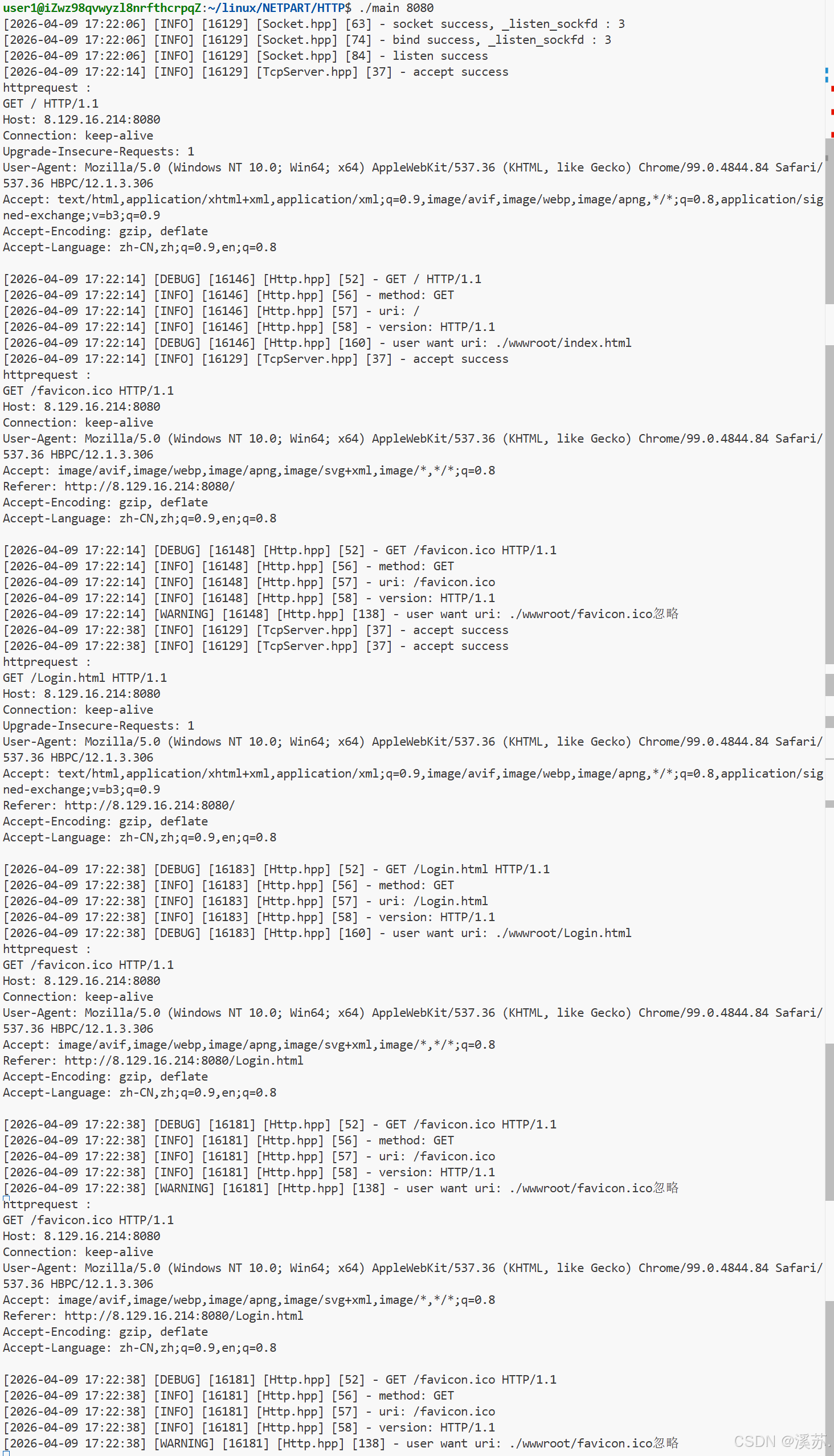 刚刚说到HTTP/1.0、HTTP/1.1的短、长连接,为什么说是无连接的呢?实际上HTTP根本没有连接的概念,这里的长短连接指的是下层TCP的连接,HTTP至始至终只关心请求和响应报文的处理,回顾之前的代码可以发现:HTTP处理的都是请求和响应报文,和连接不着边,至于每次请求都要建立新的连接其实是站在HTTP的角度去看TCP的,所以说是无连接的。这也是为什么写代码的时候要将HTTP.hpp和TcpServer.hpp分开的原因。