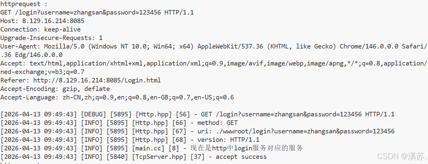 先写代码再理解:服务端在反序列化请求报文的时候,解析URI,login是HTTP提供的一种服务,后面的就是使用GET上传资源的体现,服务端拿到这两部分并且分别设置为HttpRequest中的两个成员属性_uri和_args(反序列化);并且设置一个参数_is_interact,bool类型的,为真说明是上传;其实这是一种RESTful风格的设计,通过URI中的服务设计不同的方法,例如这里是login,那么可以给这个login服务设计一种方法,需要在HTTP中定义一个哈希表构建例如login和方法的映射,通过URI中的HTTP服务来调用方法,这是一种微服务。这里方法就将args打印出来并且设置响应报文发送