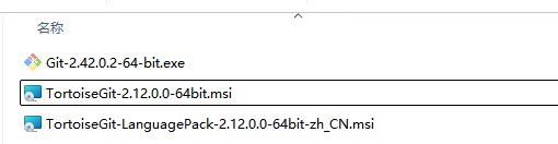 | Git-2.42.0.2-64-bit.exe | Git 本体(命令行工具) | 所有 Git 操作的底层核心,TortoiseGit 必须依赖它才能运行,装完才有黑框框的 Git Bash |