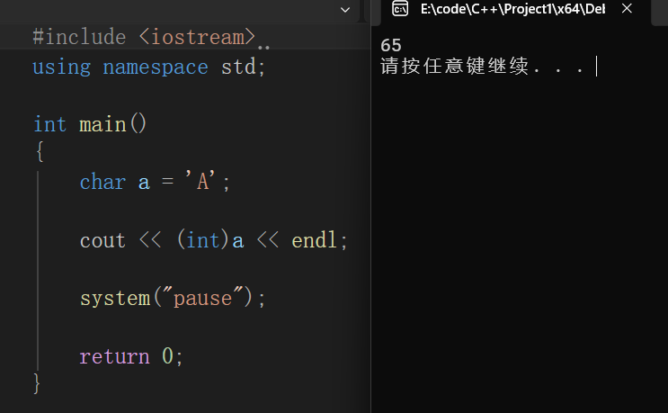 同时其在内存中储存时通过AC码进行保存的,要查看则在输出中加入(int)