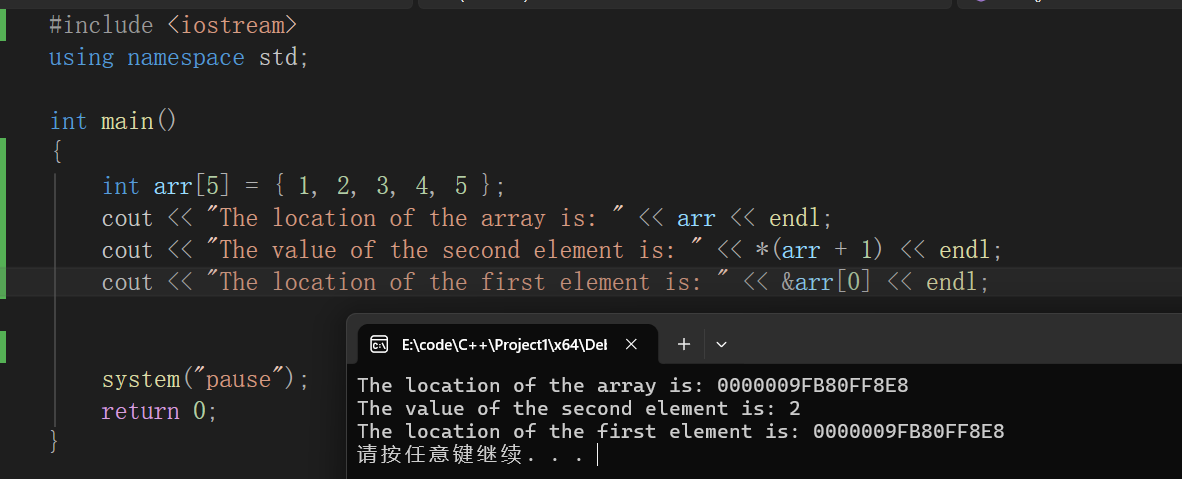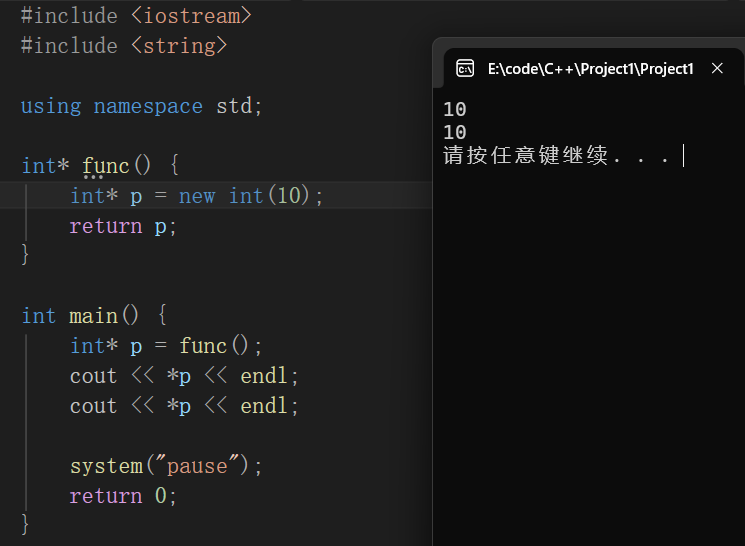 void func2() { int* arr = new int [5] {1, 2, 3, 4, 5}; }比如这个,又5个int类型的元素,一个int类型占4个字节,因此自身元素的内存开销为20,同时在这些元素的最上方,堆区还会记录new创建元素的个数,这里为5,因此最终占用内存24字节。