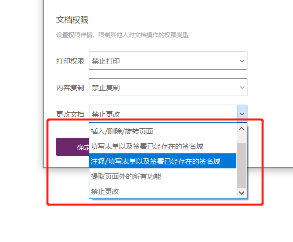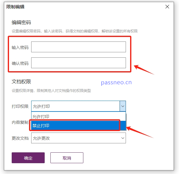 从【允许打印】下拉菜单中,可选择【允许打印】或者【禁止打印】。