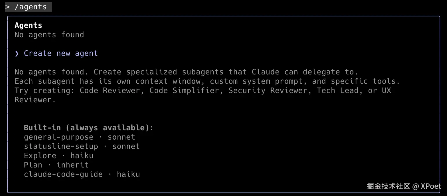 不用自己配,Claude Code 已经内置了几个常用的 Subagent,会根据场景自动调用: