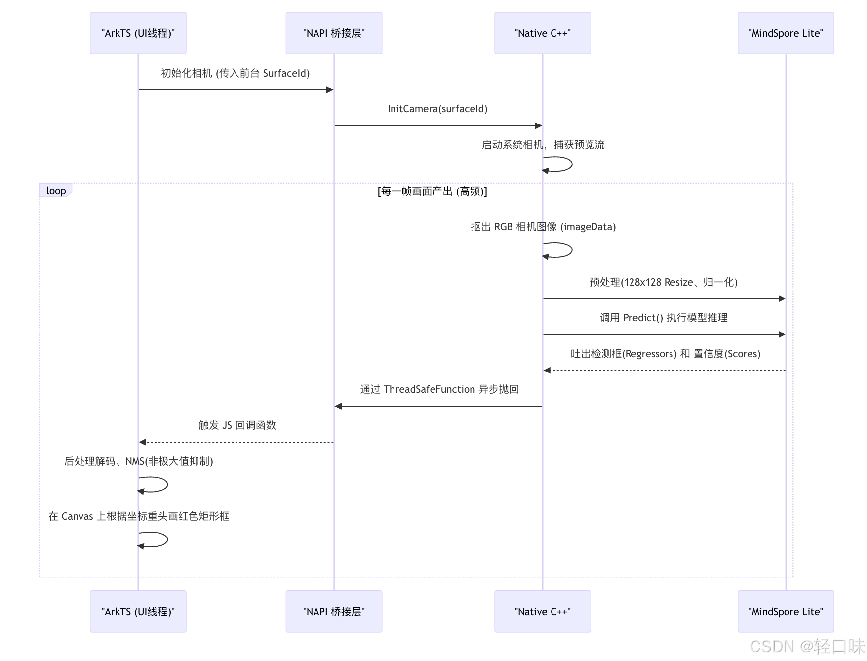 相机拿到画面后,立刻进行推断,并通过一个神奇的桥梁把结果发给 ArkTS。