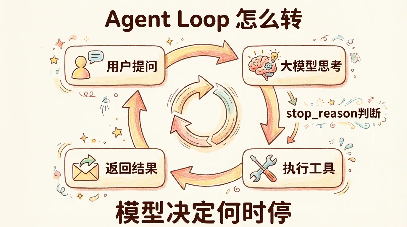 Agent Loop 解决的就是这个问题:让模型自己完成这个循环。