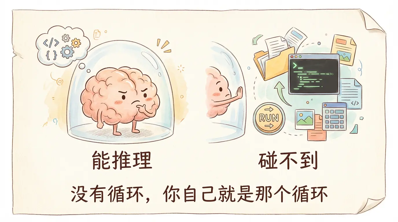 没有循环的时候,你自己就是那个循环------手动把模型的输出粘贴到终端,把终端的结果粘贴回模型,来来回回,直到任务完成。