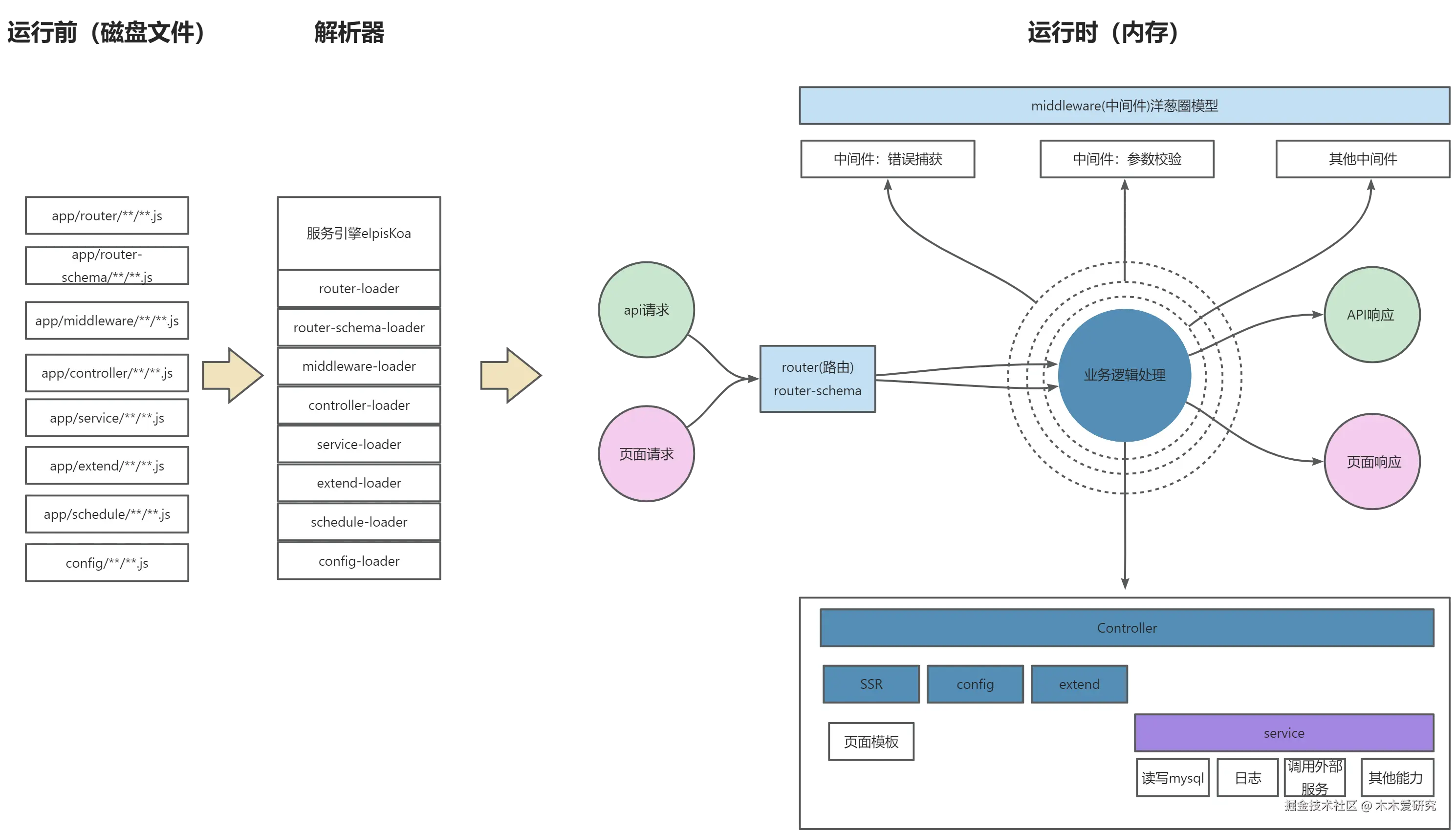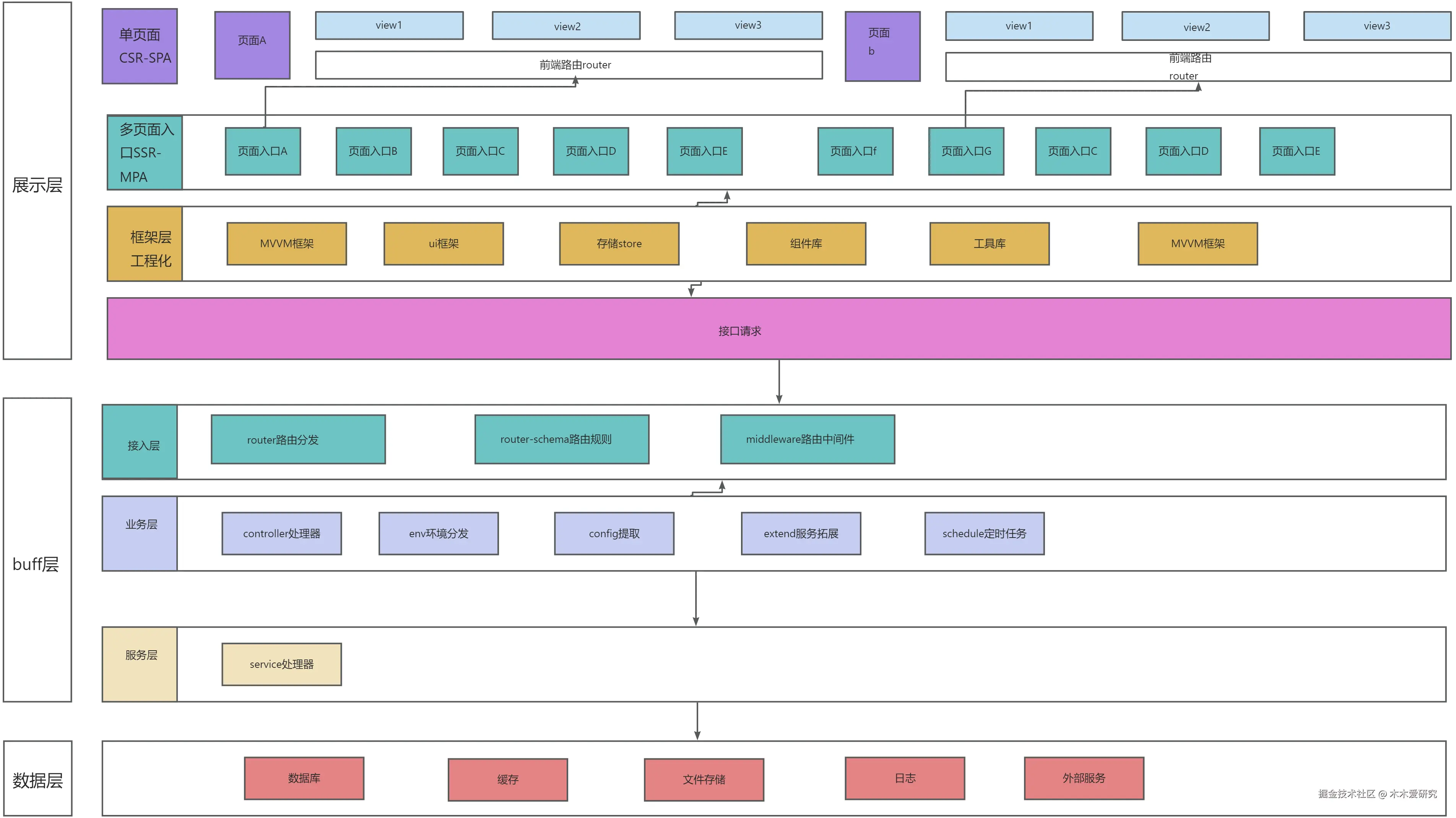 - 接入层: router接口路由分发, router-schema路由规则校验 ,middleware路由中间件