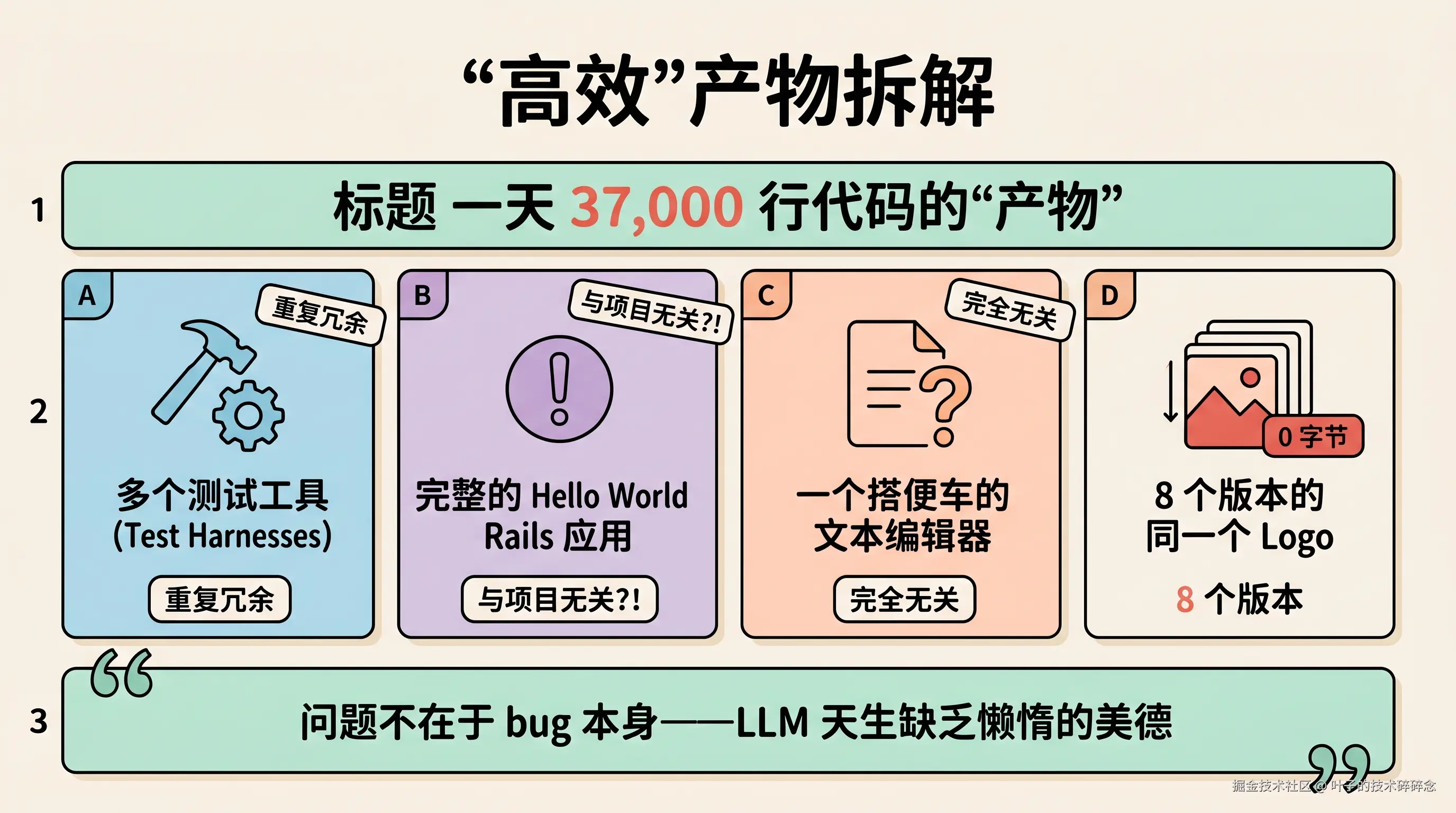 你是否也有过这样的经历:用 LLM 写代码,一天下来产出了几千行,回头看却发现------真正有价值的可能不到几百行?