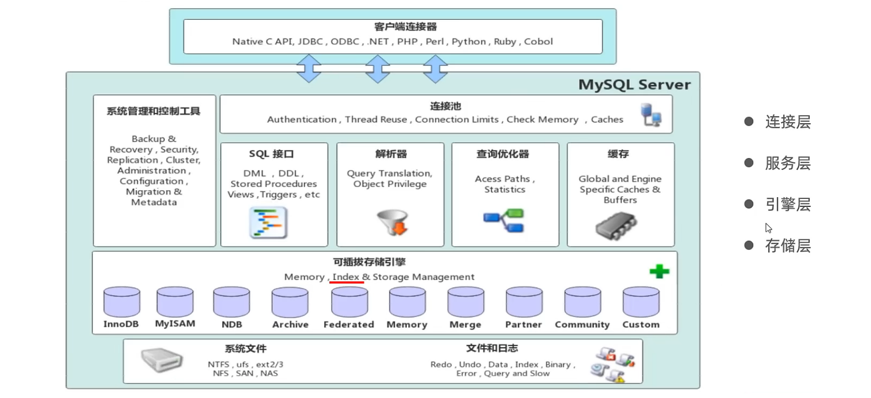 存储引擎就是存储数据、建立索引、更新/查询数据等技术的实现方式。存储引擎是基于表而不是基于库的,所以存储引擎也可以被称为表引擎。