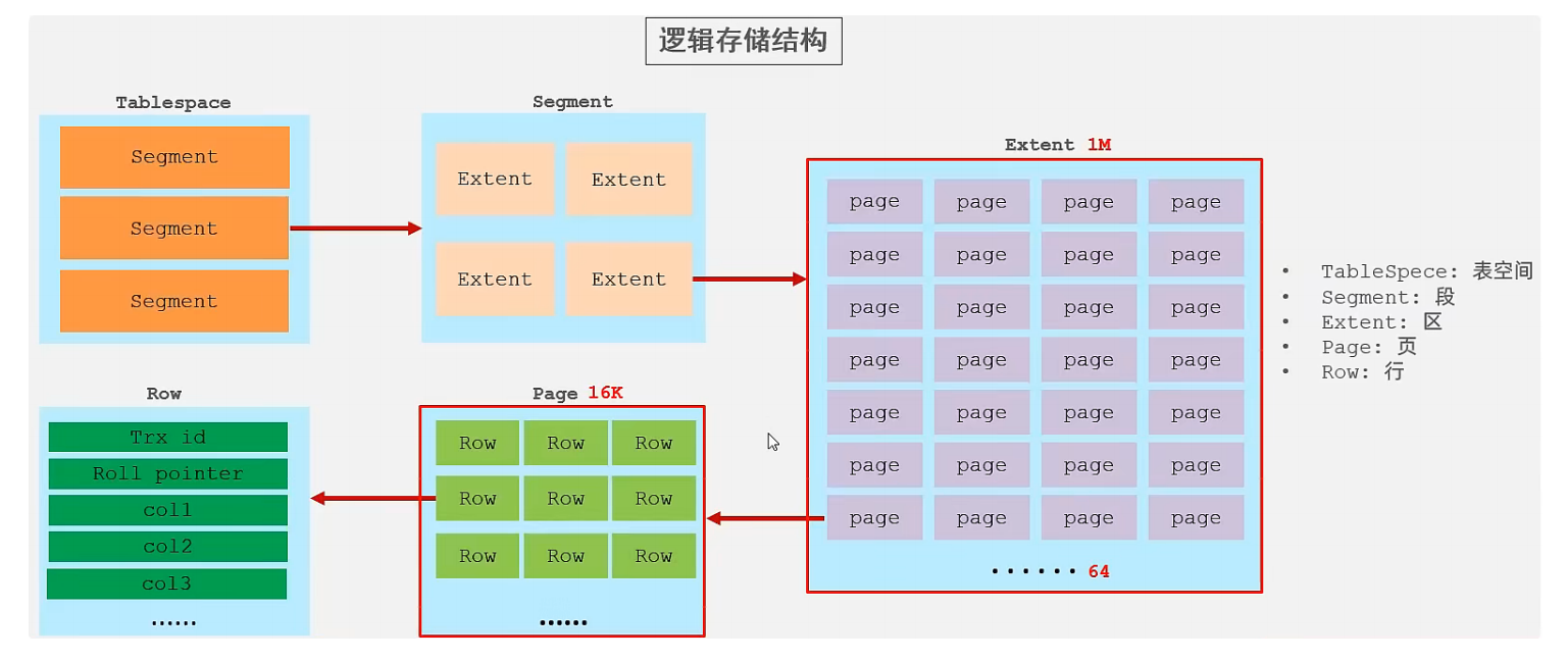 页可以为空,也可以填充一半,也可以填充100%,每个页包含了2-N行数据(如果一行数据过大,会行溢出),根据主键排列