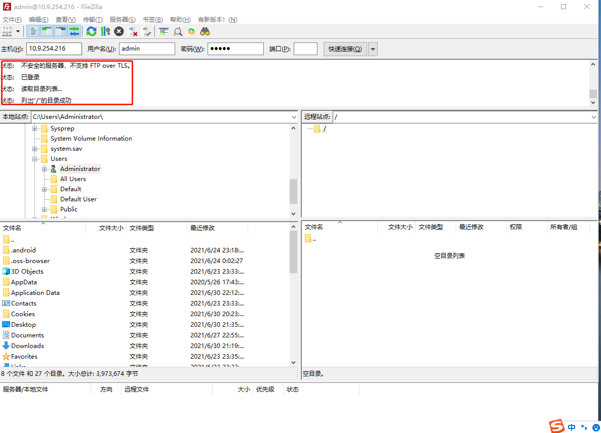| Connected to 10.9.254.216 (10.9.254.216). 220 欢迎使用视博电子FTP站点 Name (10.9.254.216:root): admin 331 Please specify the password. Password: 230 Login successful. Remote system type is UNIX. Using binary mode to transfer files. ftp> ls 227 Entering Passive Mode (10,9,254,216,43,189). 150 Here comes the directory listing. 226 Directory send OK. ftp> |
