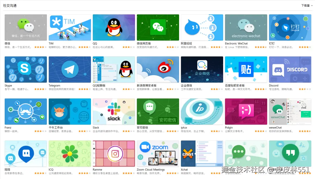 囿于时间原因,这里使用了 deepin 商店截图 ,其他 linux 发行版不一定有这么丰富,不过安装 qq、微信应该没问题