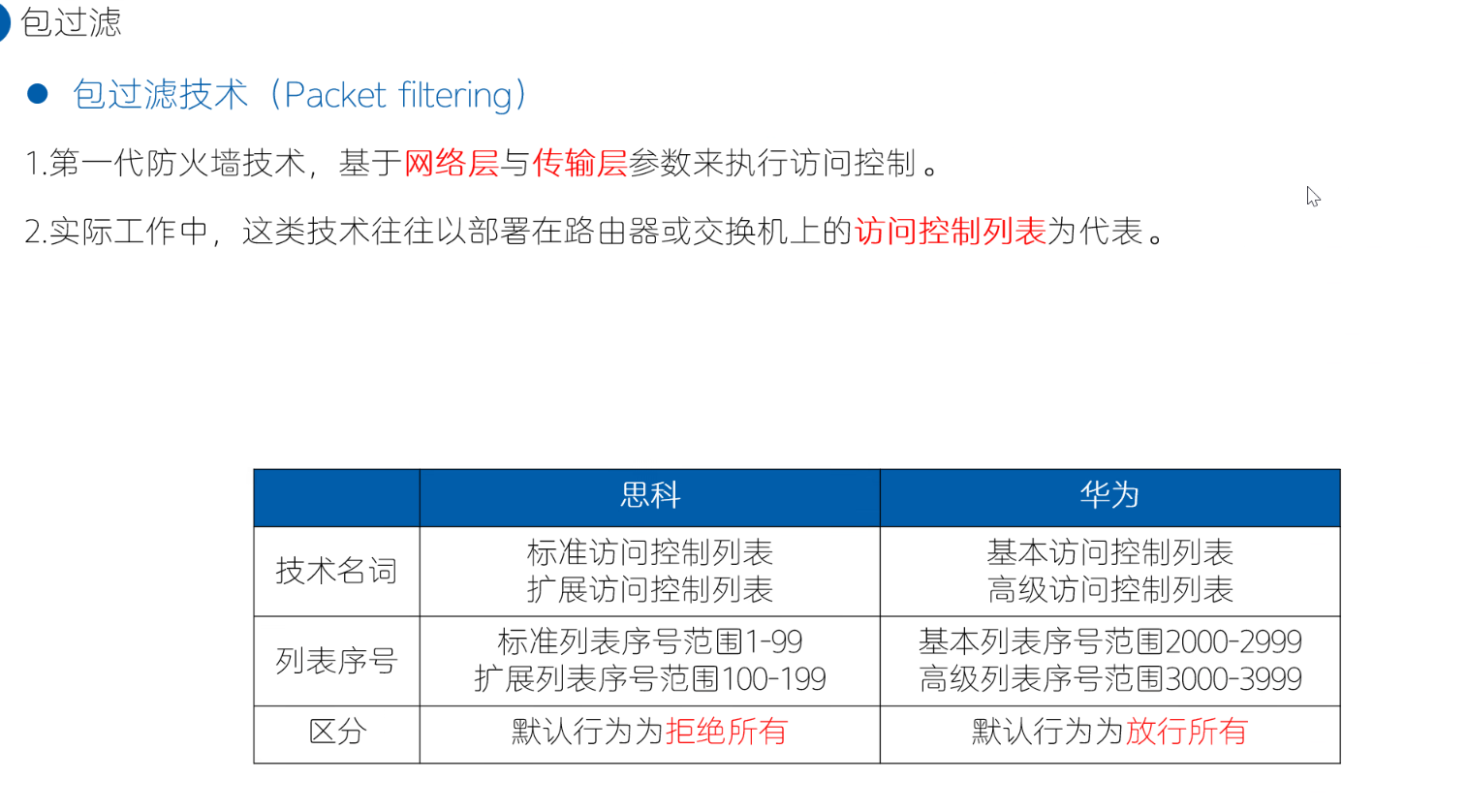 核心网络设备的内置功能:它的核心技术(ACL)已成为几乎所有路由器、交换机的标配功能,用来在骨干链路快速过滤流量。