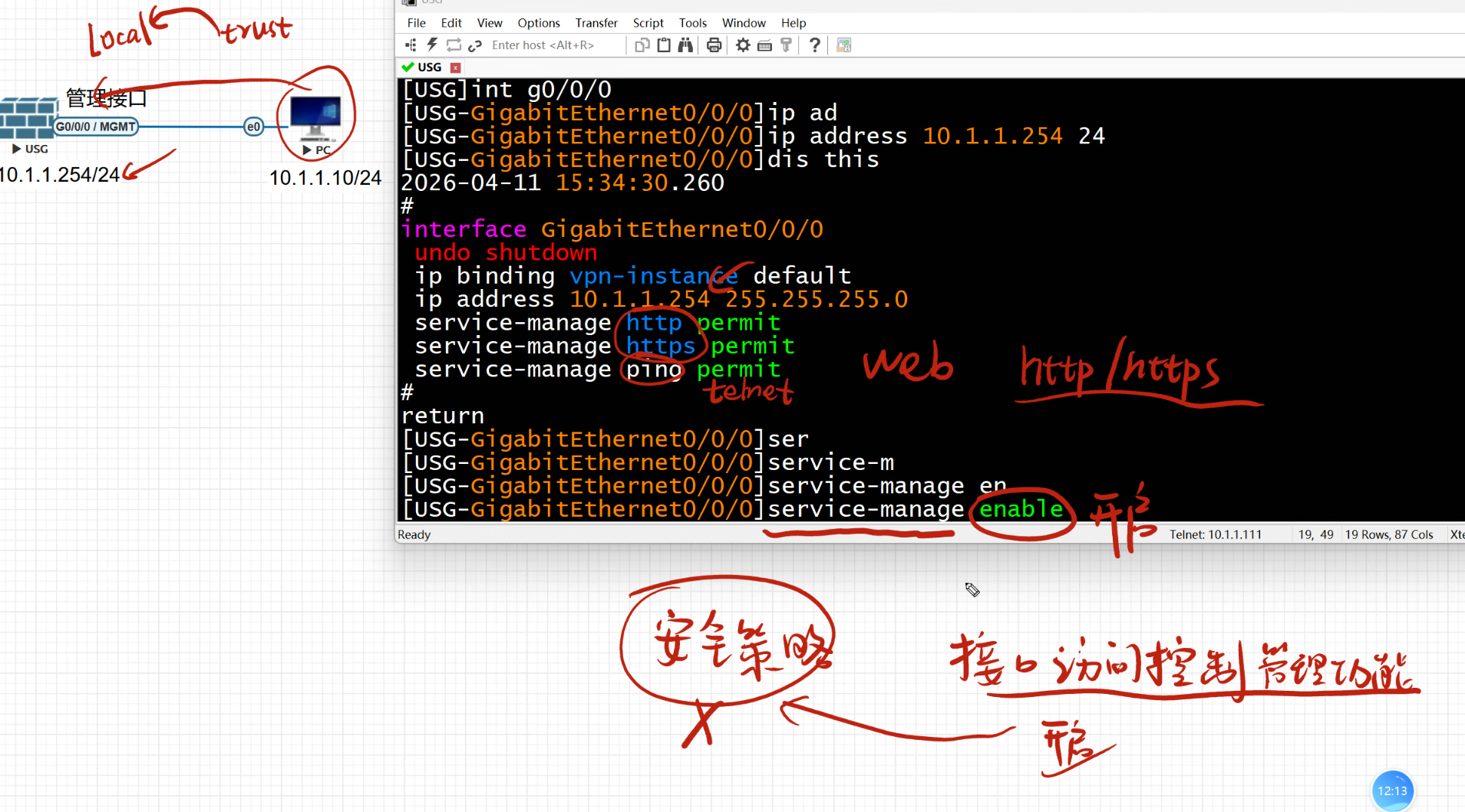 接口下面的控制优先级 大于 安全策略,就不用安全策略去放行了。