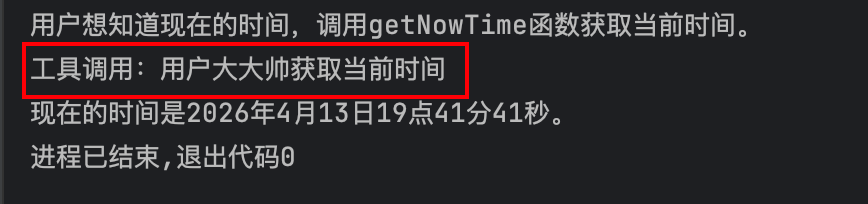 System.out.println("\n工具调用:用户"+ user +"获取当前时间");