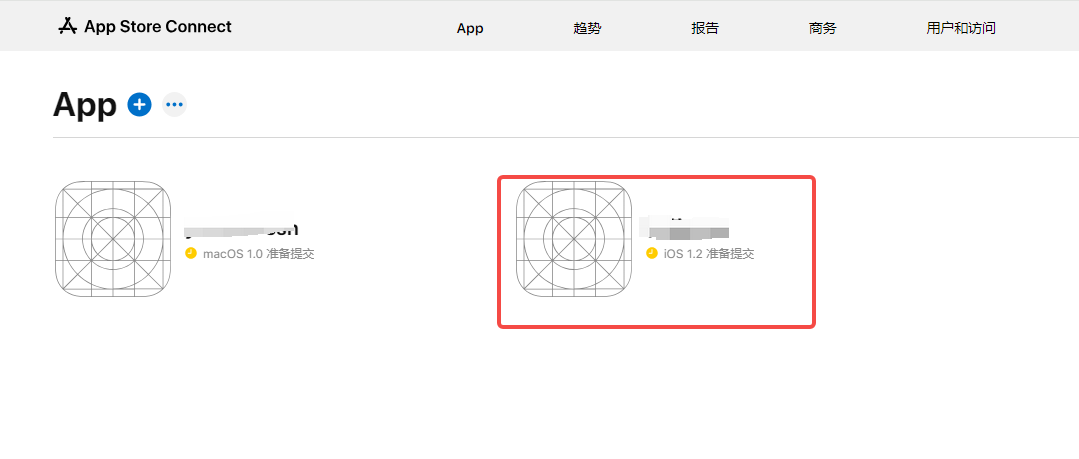 进入到苹果开发者中心,点击app store connect下面的APP模块