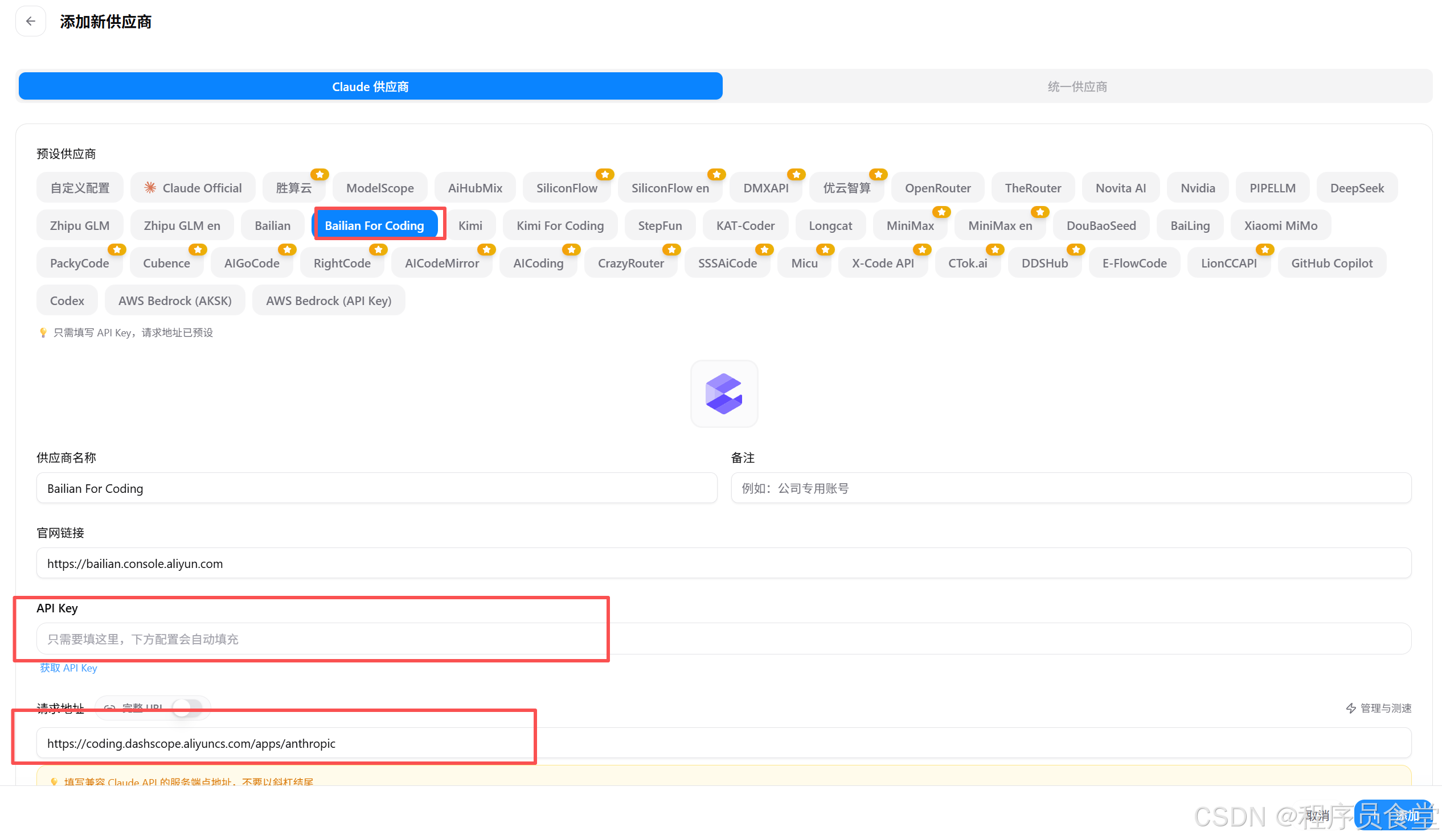 点 Save / 添加 → 主界面出现「阿里云百炼」