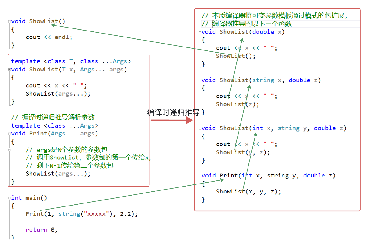 // 原理:本质编译器根据可变参数模板生成对应参数的函数