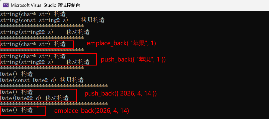 - 场景二:进阶场景( list<pair> / list<Date>) && 减少一次拷贝构造