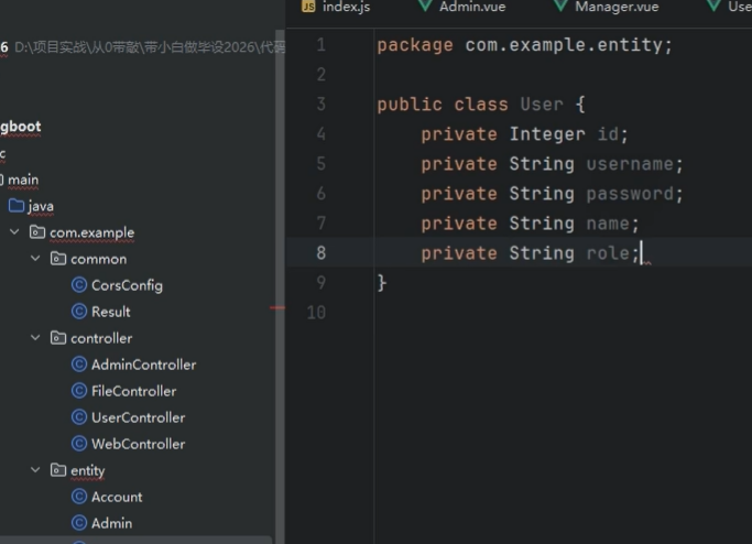 1. 在entity层创建User实体类