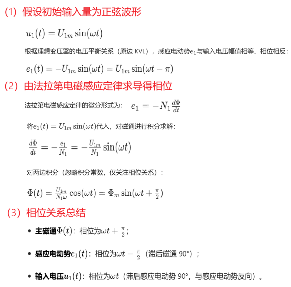 我们利用法拉第电磁感应定律分析一下他们的相位关系,这有助于我们后续分析励磁电流的曲线特性。