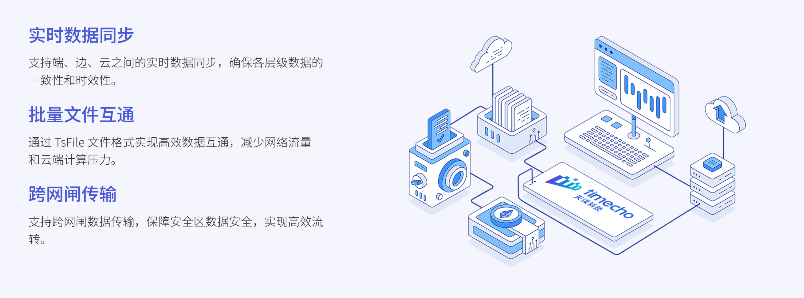 - TsFile 同步:边缘端生成的 TsFile 可以直接同步到云端 IoTDB 集群,无需通过 ETL 转换