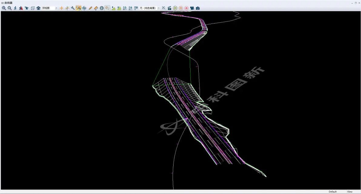 纬地作为专业道路设计软件,可详细定义道路平纵横参数,包含横断面、纵断面及边坡的实际高度信息。若需实现纬地设计图与现场开挖航拍视频的立体精准叠加,可通过导出三维 CAD的方式,保留设计方案中道路中线、边线、边坡的相对高度关系,叠加后效果更佳,操作流程:在纬地中导出三维 CAD 文件→在 GlobalMapper 中查看三维效果→导入图新说完成后续配置。