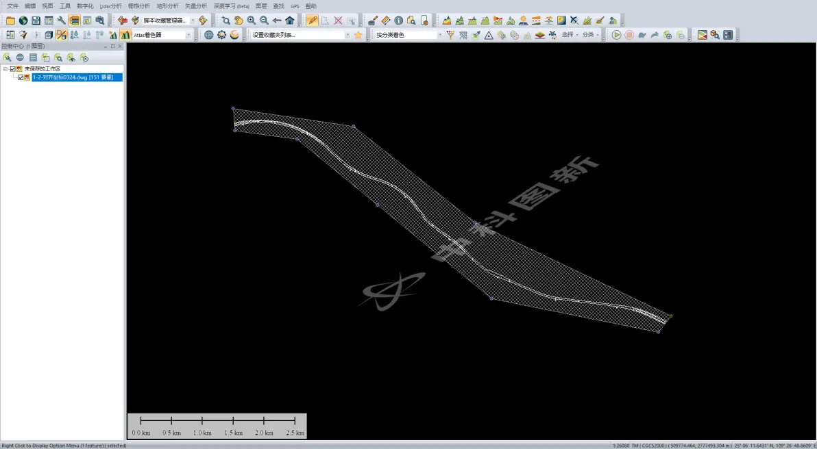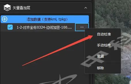 在侧栏的矢量叠加层管理模块中,右键选中需校准的矢量文件