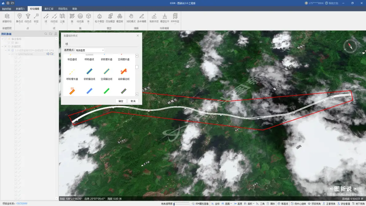 注意:矢量文件建议在图新说中完成两项核心配置 ------ 将空间模式设置为海拔高度,同时自定义样式风格(重点调整线条的粗细与颜色)