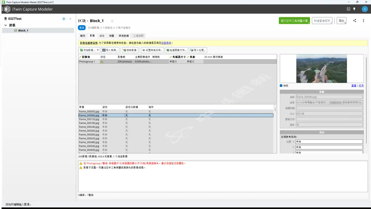点击【添加影像】按钮,选择本软件空三辅助功能抽帧后的视频帧图片