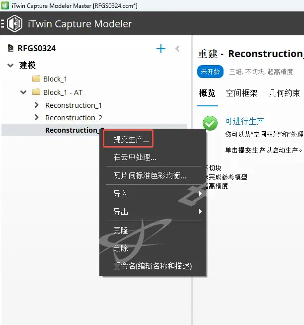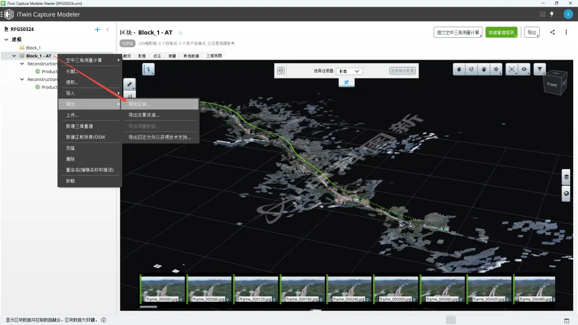 在 ContextCapture(iTwinCapture)中,右键空三计算完成的 Block,执行【导出区块】操作
