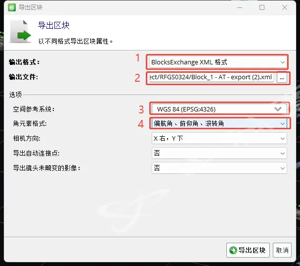 o 输出格式:选择【BlocksExchangeXML 格式】