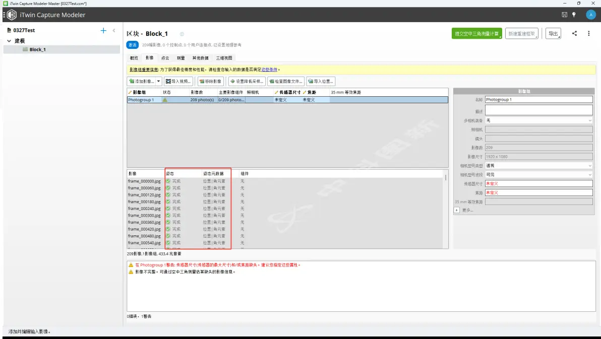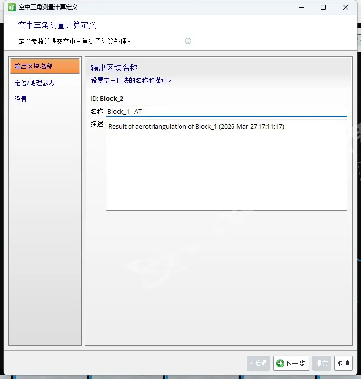右键选中已配置照片与 pos 文件的 Block,提交空三计算