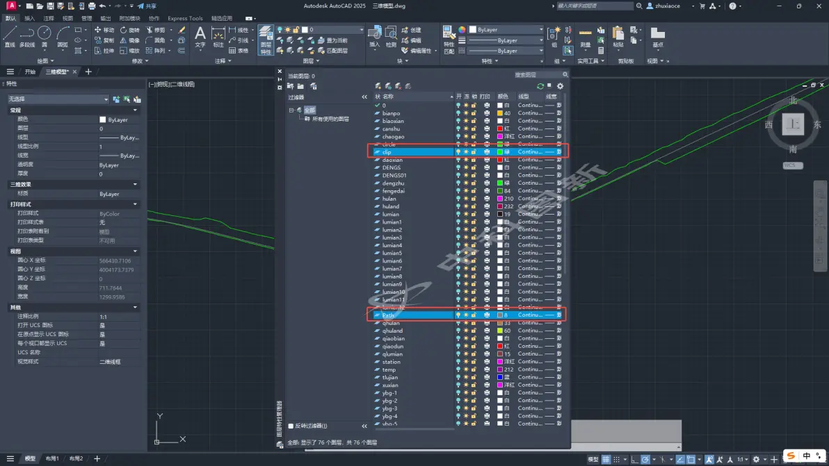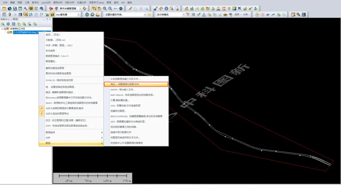 从纬地中提取空间的道路中线、占地线等数据,纬地导出的三维dwg文件,直接按照图层进行筛选即可。