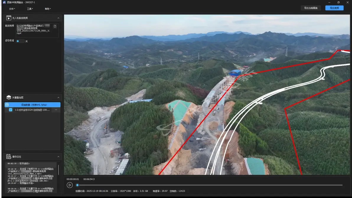 图新 AR 视频融合产品可快速实现 CAD 等矢量数据与无人机航拍视频的精准叠加,精准解决施工项目部对项目路线定期航拍、叠加 CAD 数据后完成汇报的核心诉求。