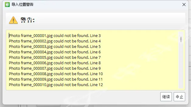 若出现 "pos 文件信息多于导入照片" 的提示,直接点击【继续】即可