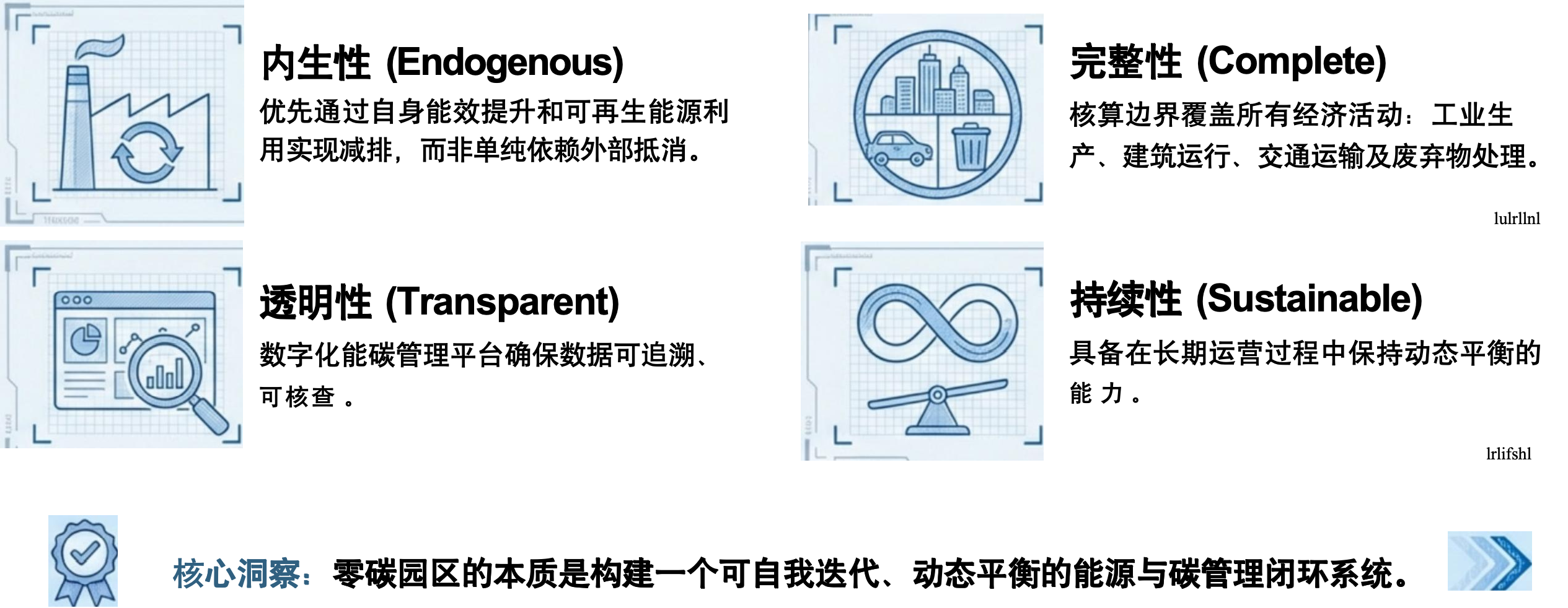 零碳园区是指在行政边界内,通过能源转型、节能降碳等手段最大化减排,并利用绿证、绿电交易及CCER抵消残留排放,最终实现二氧化碳当量净零排放。