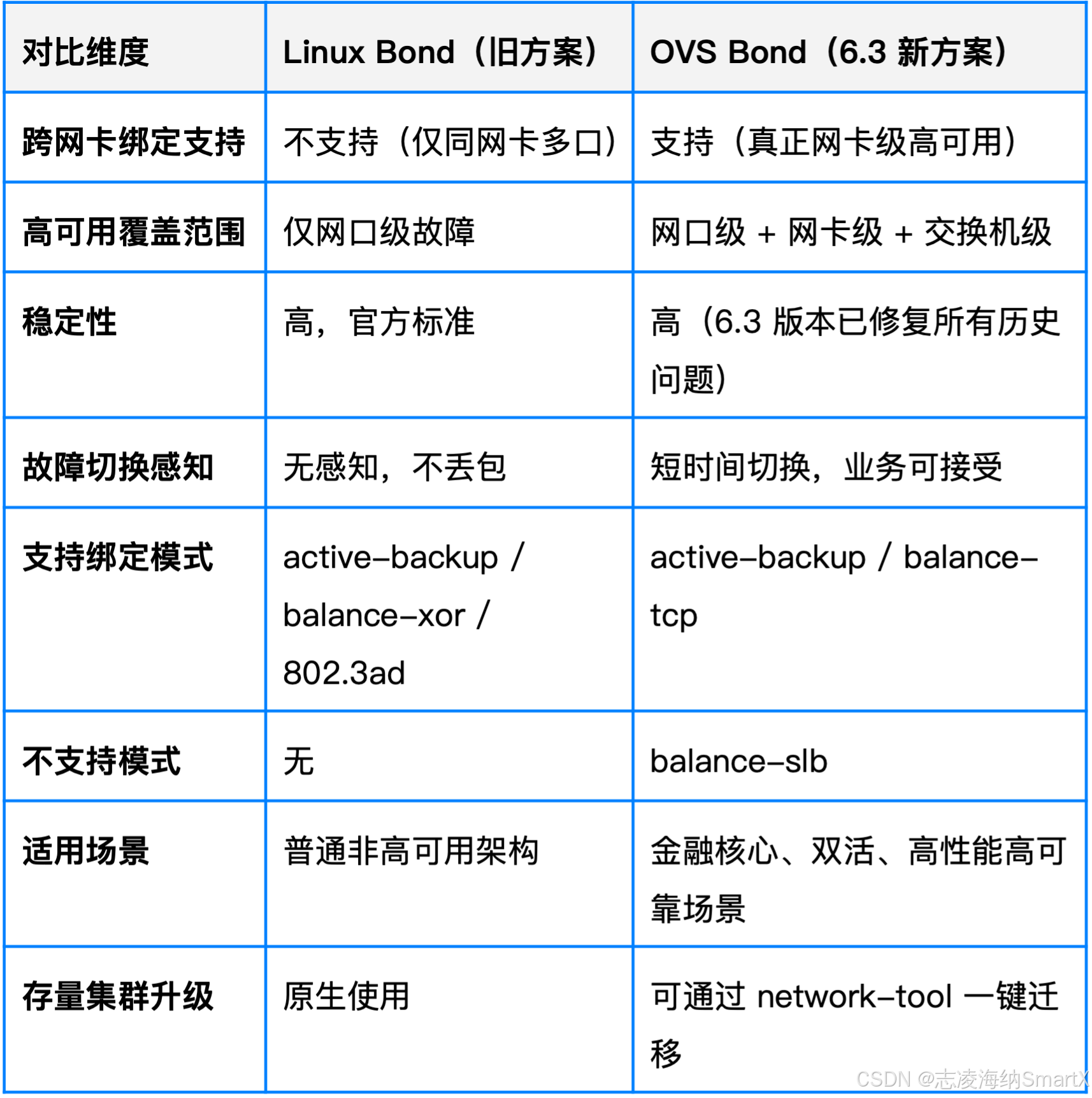 - 统一网络架构:存储网络统一使用 OVS Bond,管理更简单、运维更高效。