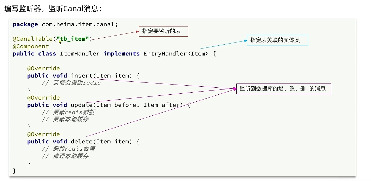 - 异步通知 :修改数据库时发送事件通知,相关服务监听到通知后修改缓存数据。