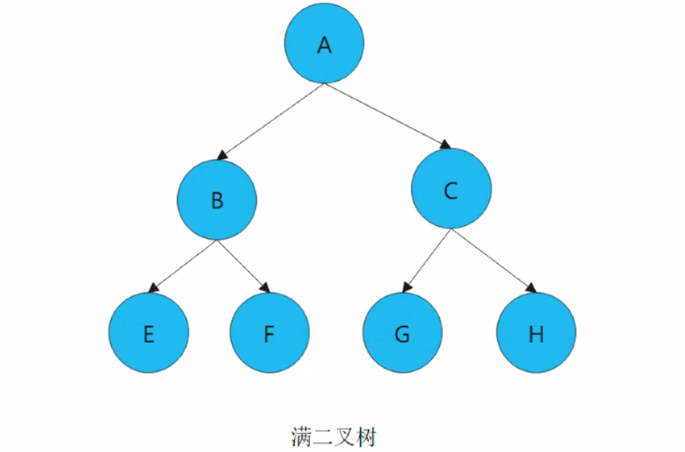 满二叉树:每一层的节点数都达到最大值,例如:一个满二叉树的层数是k,节点总数是2^k - 1。