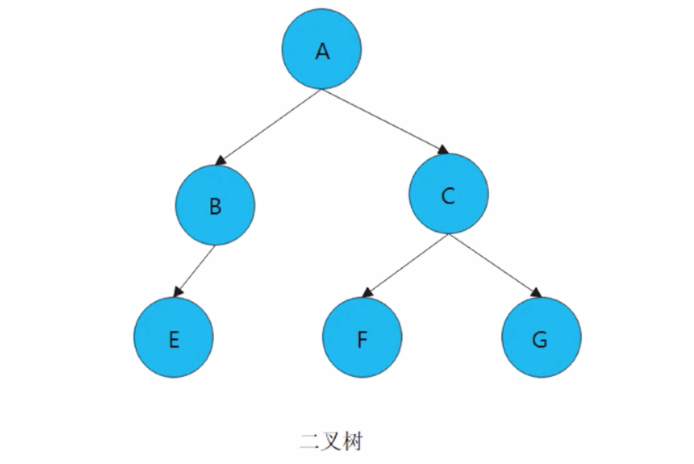 二叉树是树的一种特殊形式,要求树的度小于等于2 ,并且二叉树的树有左右之分,次序不能颠倒,因此二叉树是有序树 。如图: