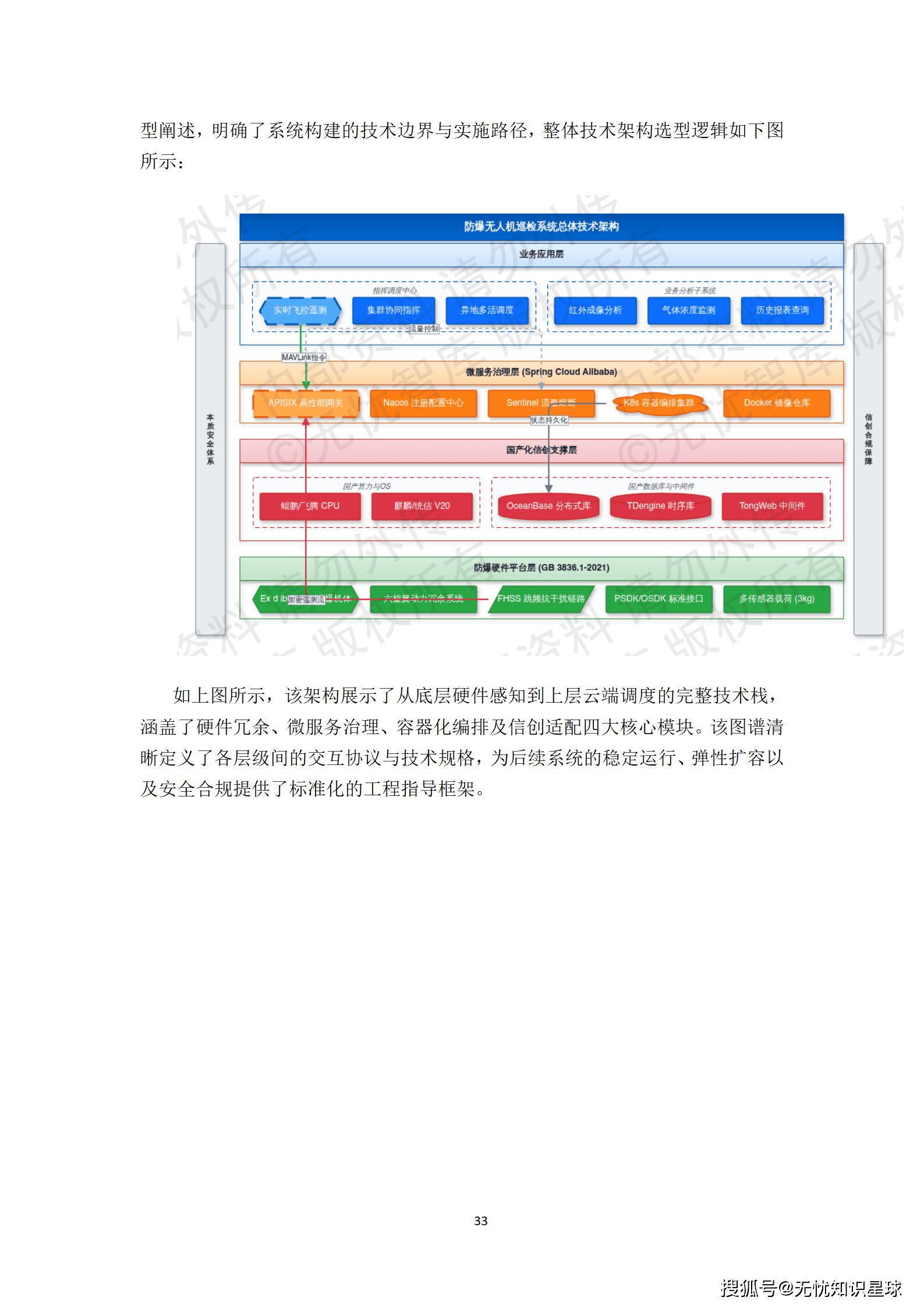 - 硬件平台: 防爆无人机硬件平台关键选型参数严格遵循GB 3836 / IECEx标准,整机达到Ex d ib IIC T4 Gb以上防爆等级。