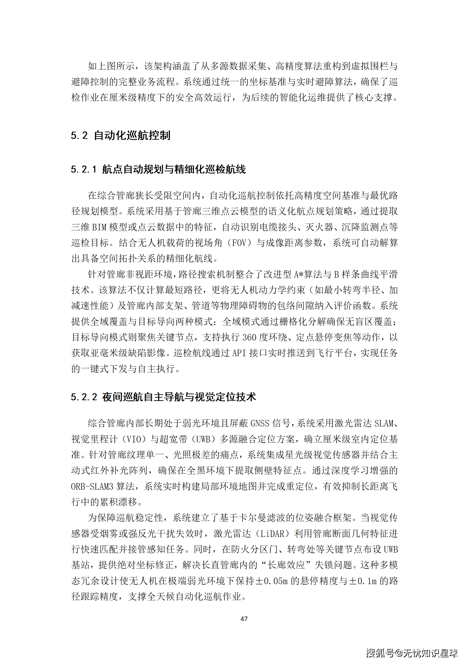 - 自主导航: 采用激光雷达SLAM、视觉里程计(VIO)与超宽带(UWB)多源融合定位方案,在无GPS环境下保持±0.05m的悬停精度。