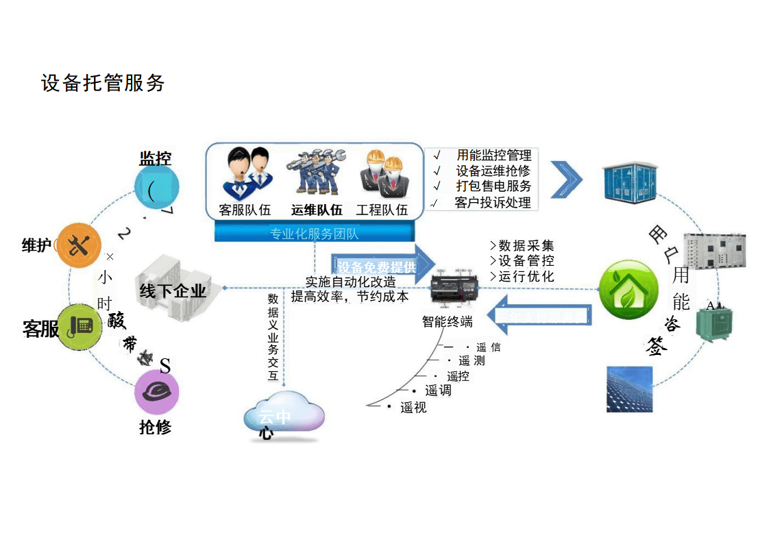 - 设备代运维: 针对用户缺乏专业运维团队的问题,提供7*24小时远程监控与线下抢修服务,保障用电安全。