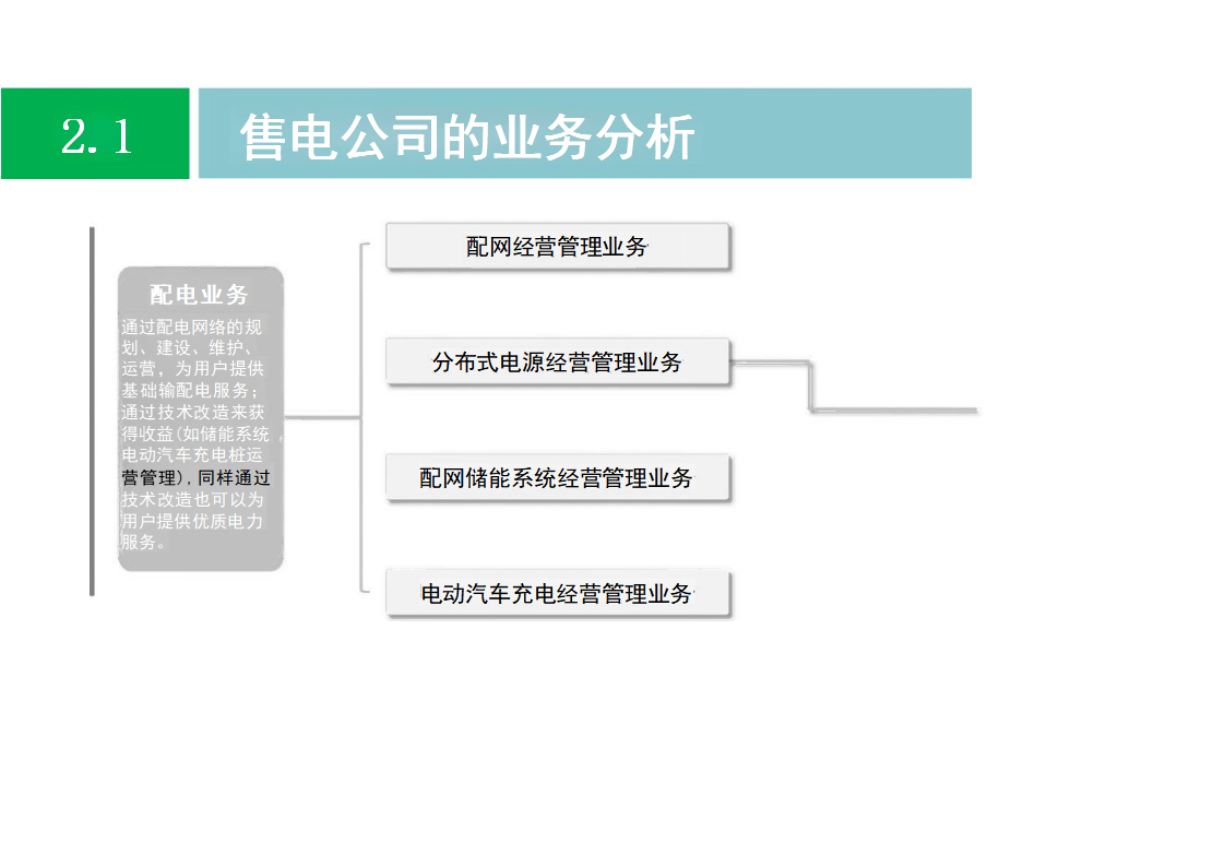 - 业务组合: 售电业务为核心,配电业务为基础,用电服务与发电业务为延伸。
