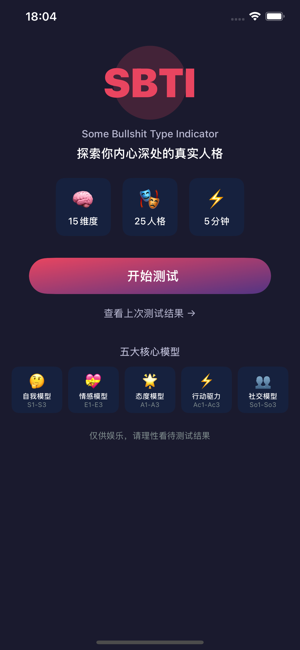 最近在App Store上看到一款叫 **SBTI** 的测试App,试了一下,觉得挺有意思,也很有启发,分享给你们。