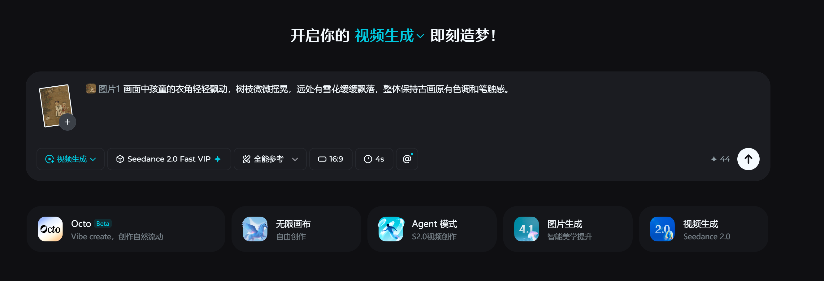 | 基础图片生视频 | 单图生成动态效果 | 让名画、老照片、静态插图动起来 |
