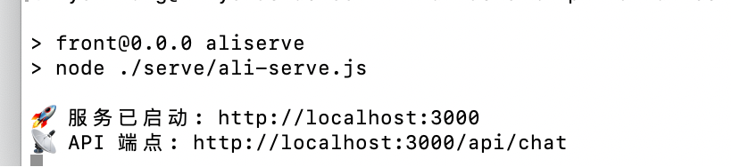 | Plain Text �� 服务已启动: http://localhost:3000 �� API 端点: http://localhost:3000/api/chat |
