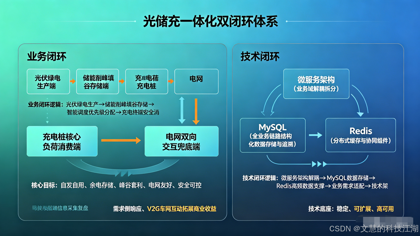 本系统围绕"源-储-荷-网"协同核心,构建"业务闭环+技术闭环"双闭环体系,确保光储充一体化全链路可控、可管、可盈利,实现从生产到消费、从技术支撑到业务落地的完整闭环。